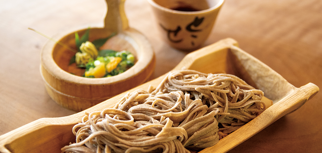 床瀬のそばは、つなぎとして床瀬で採れた自然薯を入れている店が多いのが特徴。床瀬集落ののどかな空気と囲炉裏のある古民家の雰囲気が相まって、一段と美味しく感じます。