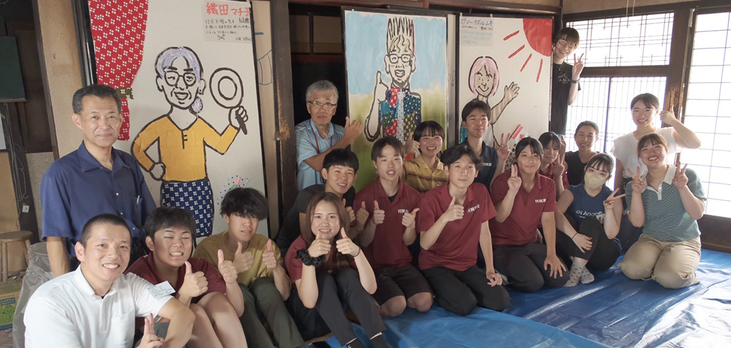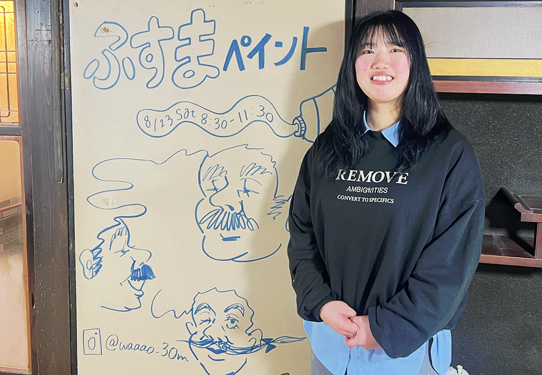 解放日やワークショップは、長期休暇や帰省に合わせて行っています。村岡高校の地域づくりの授業にYORUのワークショップを組み込んでもらったり、地域の祭りへの参加、イベントの開催場所に選んでもらったりと、約月1回のペースで活動をしてきました。そして昨年8月23日には、「ふすまペイント」というYORUの修繕を兼ねたワークショップを開催しました。